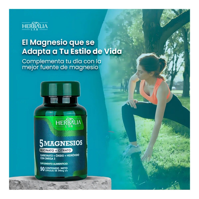 Magnesio Complex 5 en 1 – Bisglicinato, Citrato, Carbonato, Óxido e Hidróxido – Fórmula Completa para Uso Diario – 90 Cápsulas | Herbalia Lab