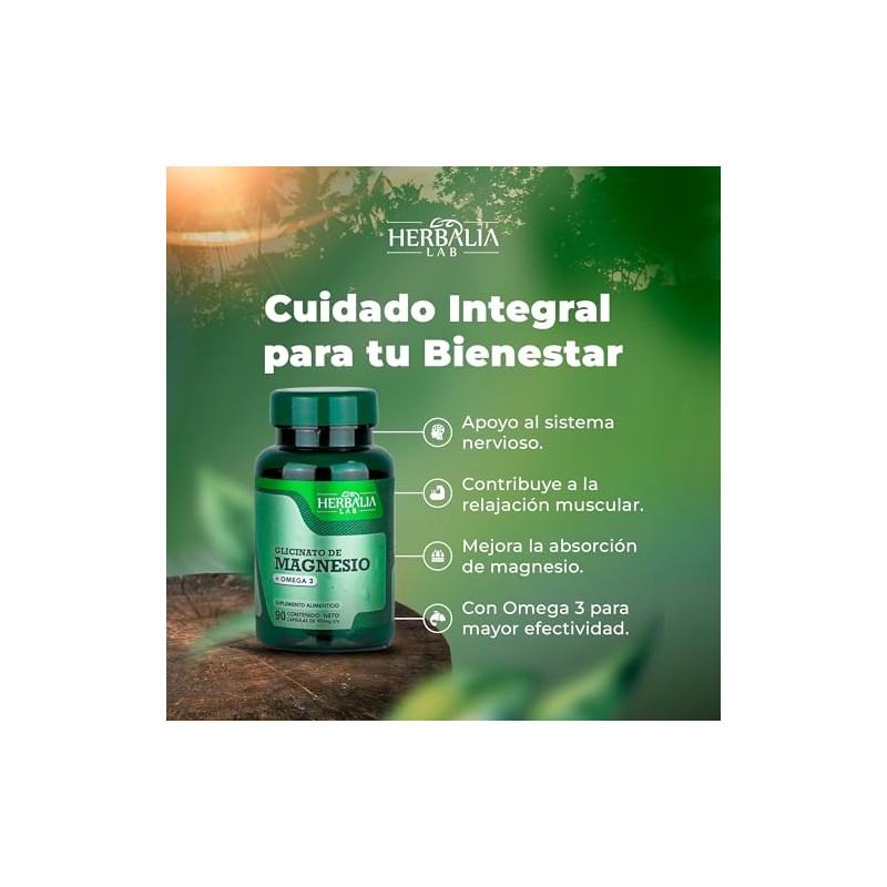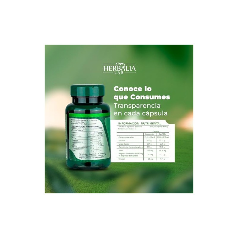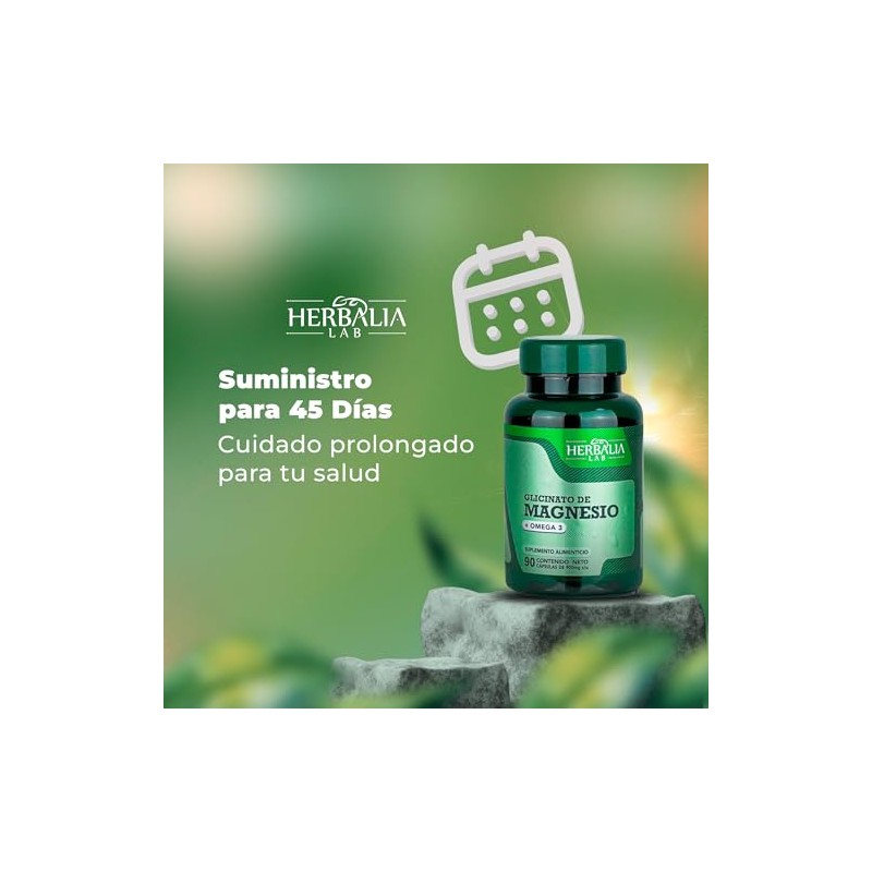 Magnesio glicinato 400 mg con Omega 3 Alta absorcin y frmula avanzada Mineral esencial para uso diario 90 cpsulas Herbalia Lab