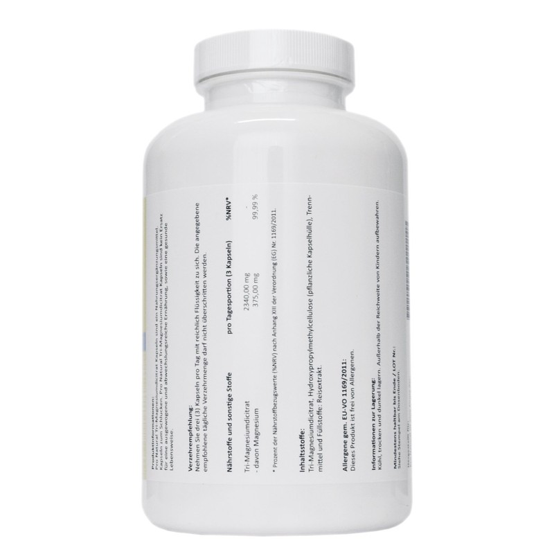 - Excellent value for money: 240 capsules each with 780 mg of pure tri-magnesium di-citrate. The di-citrate mould has twice the amount of elemental magnesium (approx. 16%) than the citrate form (only approx. 8%). Each daily dose (3 capsules) therefore contains 375 mg of elemental magnesium. It is highly bioavailable and digestion-friendly. Caution: Elemental magnesium is rarely labeled by other suppliers. Often magnesium citrate is declared as magnesium