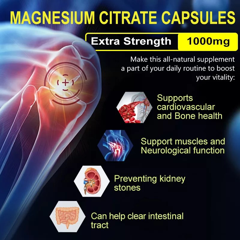🔹 Ingrediente activo: Citrato de Magnesio (1000 mg por cápsula)