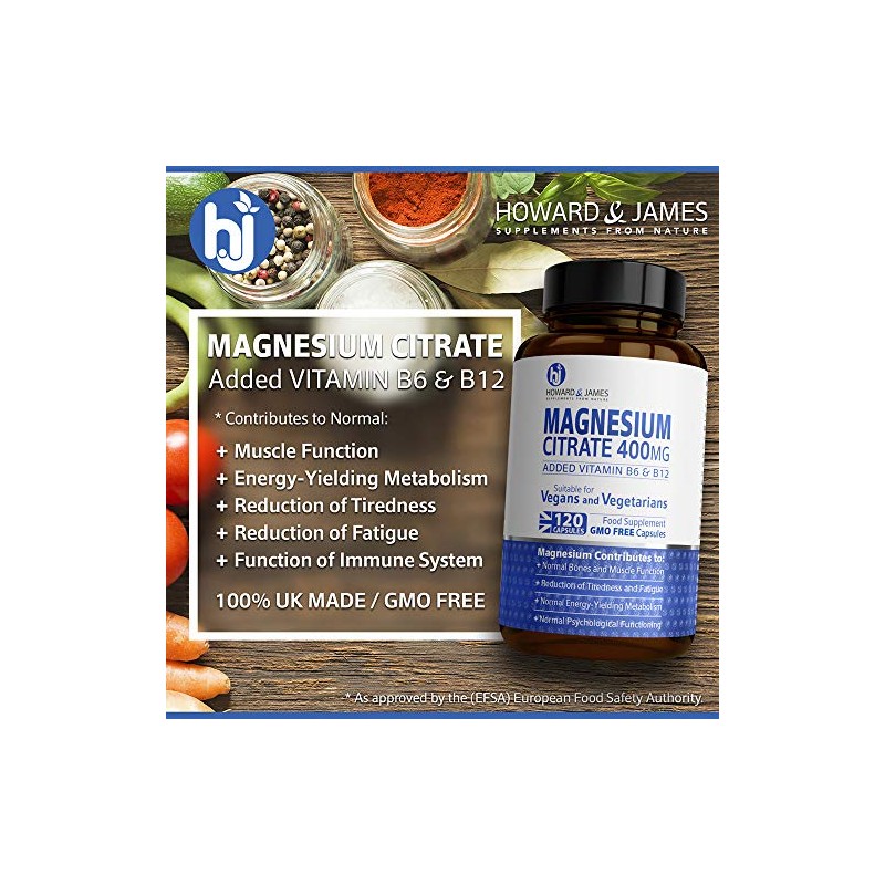 Magnesium Citrate 400mg Plus Vitamin B6 & B12 x120 Capsules by Howard & James