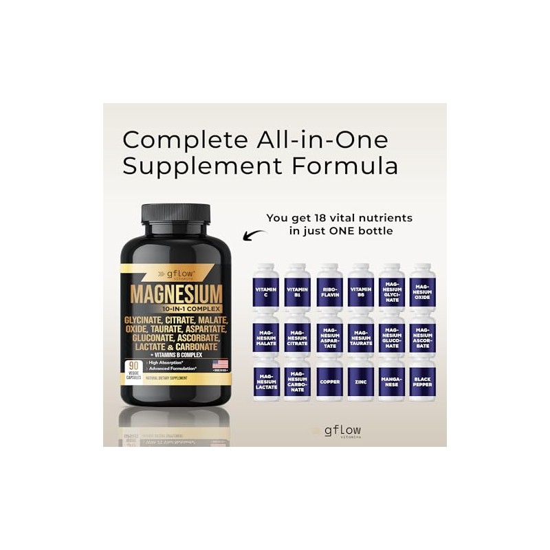 Magnesium Complex Supplement - 10 Active Forms, Glycinate, Citrate, Malate, Oxide, Taurate, Aspartate, Gluconate, Ascorbate, Lactate, Carbonate, Plus