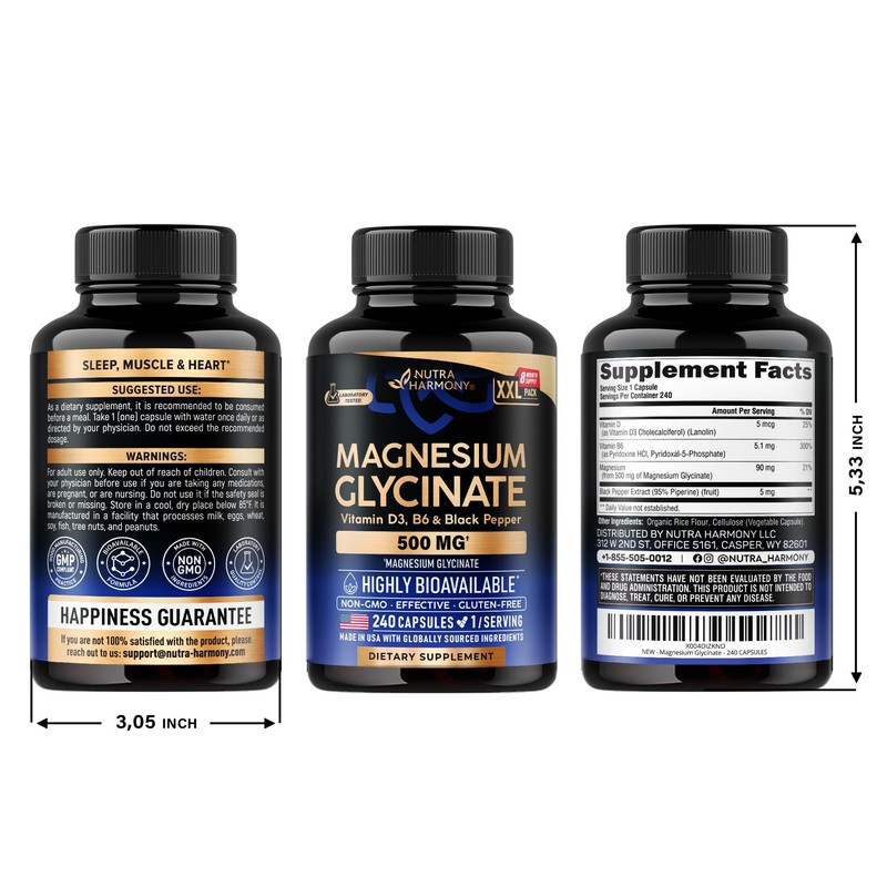 - Magnesium Glycinate 500mg — Pure charge for overall health, well-being & nutrients metabolism! Magnesium helps to maintain proper sleep & rest, helps to keep healthy muscle tonus, and supports overall heart health*.
