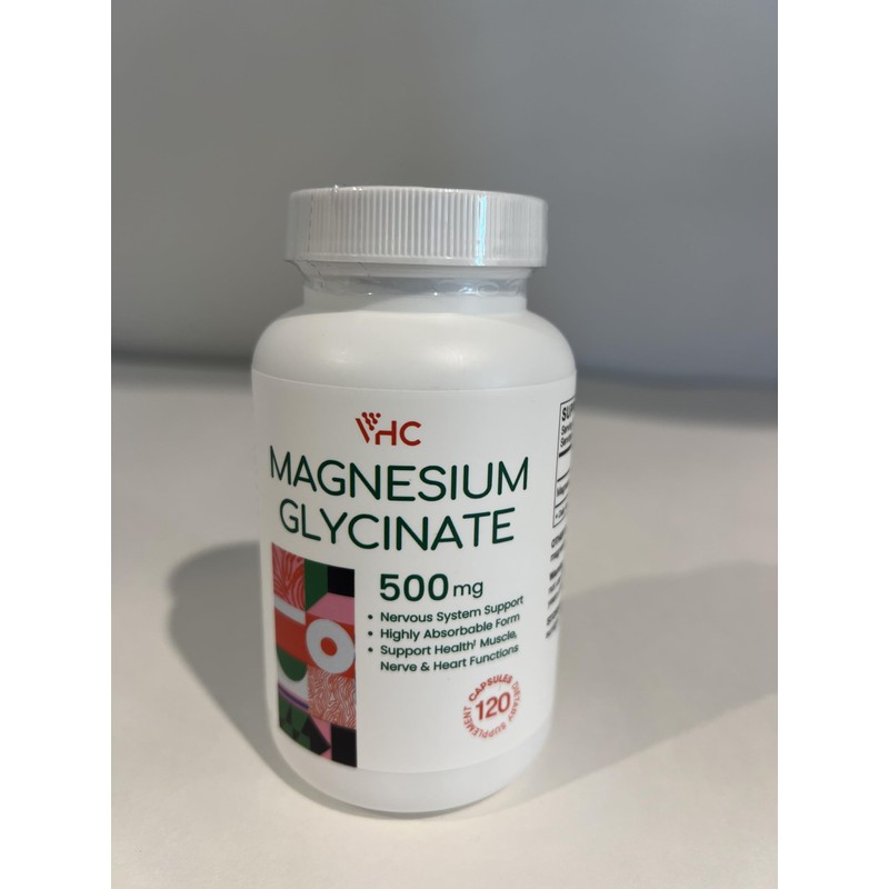 VHC Magnesium Glycinate 500mg Supplement Capsules, High Absorption- Gentle Form,Highly Purified Magnesium Mineral Supplements for Women & Men, 120 Caps, Made in USA