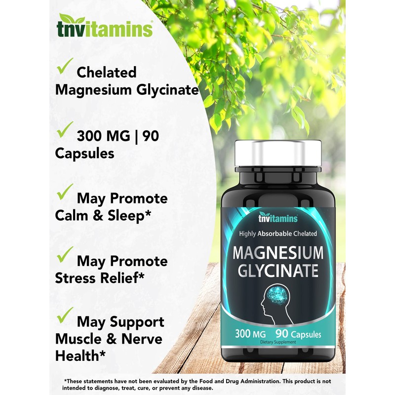 Magnesium Glycinate Capsules (300 MG x 90 Count) | Pure Chelated Magnesium Bisglycinate Powder Supplement | Glicinato de Magnesio | Magnesium for Sleep, Calm, Nerve, & Stress Support* | TNVitamins