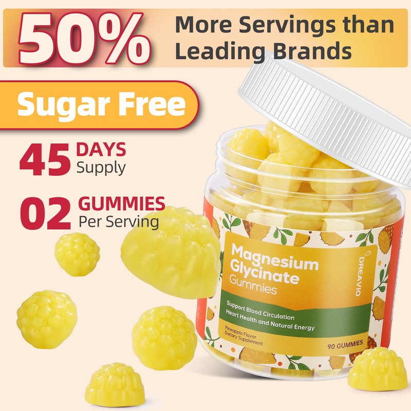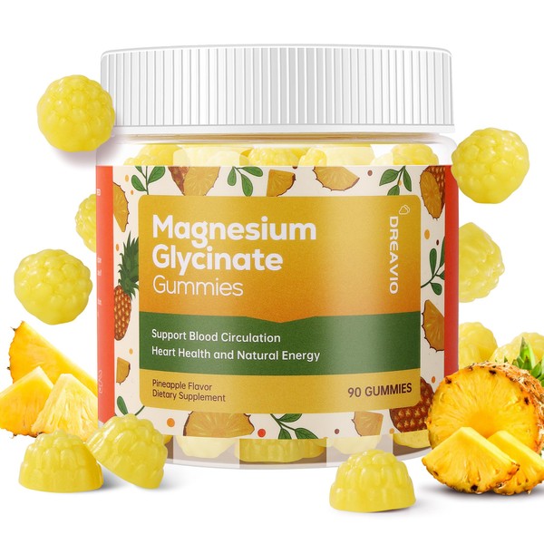 DREAVIO 90 Count Magnesium Glycinate Gummies 400mg w/Ashwagandha Supplement - Sugar Free Zinc Magnesium Glycinate Supplement Ashwagandha Gummies for Adults Pineapple Gummies