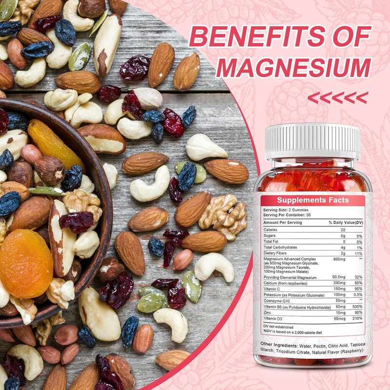 The magnesium gummies are made with natural and organic raspberries. These calm magnesium gummies provide the required daily magnesium intake. Magnesium participates in over 300 enzymatic reactions that promote heart and nerve function. Low levels of magnesium can cause multiple health issues, affecting mood and sleep quality.