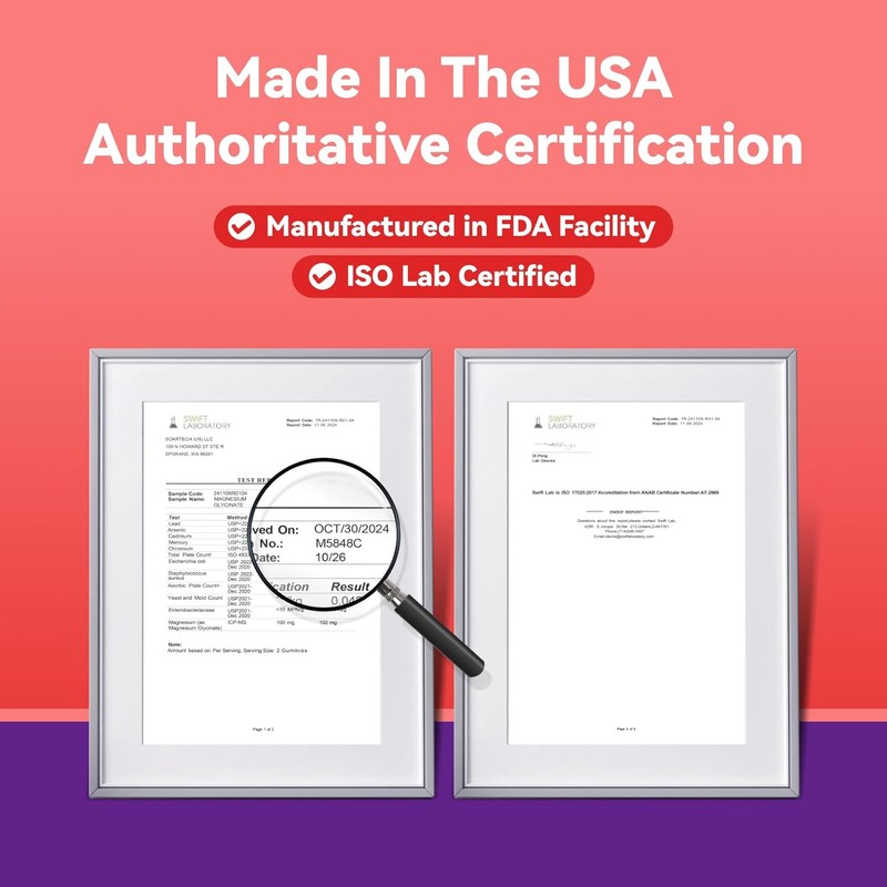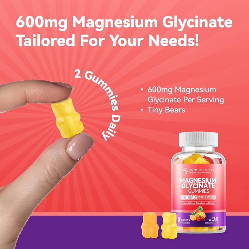 Promotes Deep & Restful Sleep – These convenient, chewable magnesium glycinate gummies help you unwind into deep, peaceful sleep—no water or pills needed. Wake up feeling refreshed and recharged.