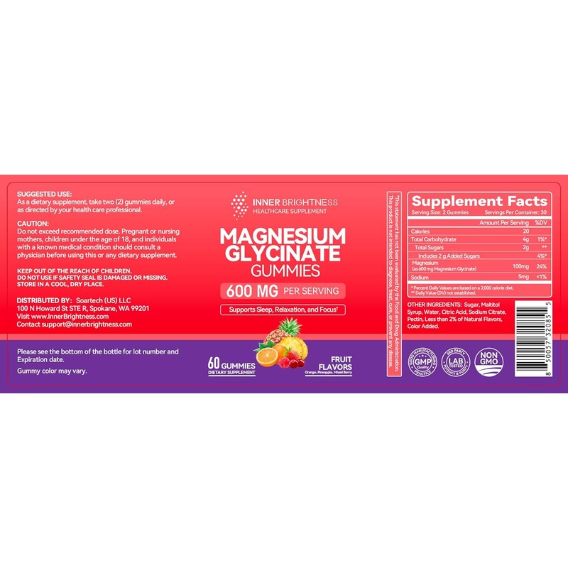Magnesium Glycinate Gummies 600mg | Non-GMO, Gluten-Free Supplement for Adults & Kids | Supports Sleep, Relaxation & Focus | 3-in-1 Mixed Flavor, 60 Count