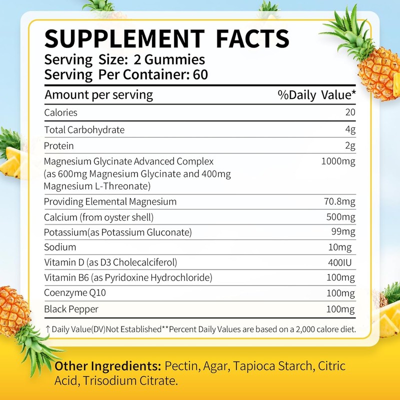 Formulated with magnesium glycinate and L-threonate, these gummies provide highly bioavailable magnesium for superior absorption. They support daily energy, overall wellness, and help maintain optimal magnesium levels with ease.