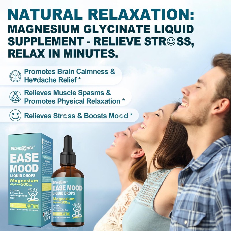 - [Supports Relaxation and Mood Balance]: Our Magnesium Glycinate Liquid Supplement combines premium ingredients like GABA, Ashwagandha, Rhodiola Rosea, Saffron, and Vitamin B6 to promote relaxation, reduce anxi☻ty, and support mood well-being. These powerful ingredients work together to ease the nervous system, stabilize mood, and help your body better cope with str☻ss, leaving you feeling more balanced and at ease.