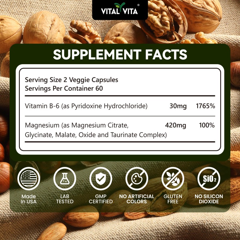 Magnesium Glycinate, Malate, Taurinate, Oxide, Citrate + B6 Vitamin 420 mg