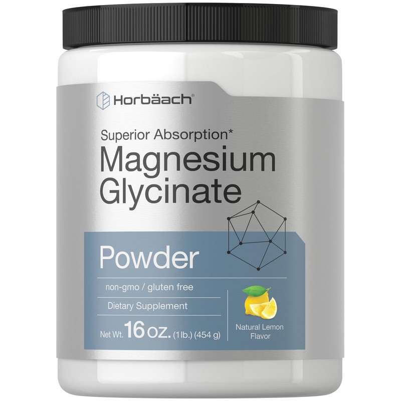 Magnesium Glycinate Powder | 1 lb | Lemon Flavored | Superior Absorption | Non-GMO & Gluten Free | by Horbaach