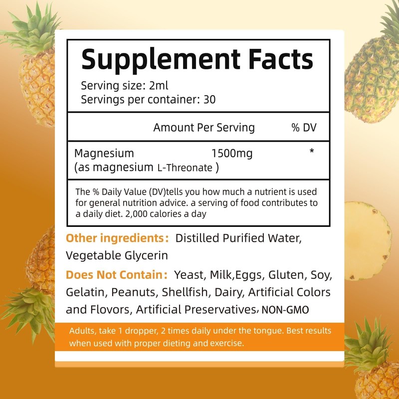 - Magnesium L-Threonate Liquid Drops Restore Health Magnesium Levels Support Cardiovascular Promote Restful Sleep Stress Management 60ml Net Wt Pineapple Flavor