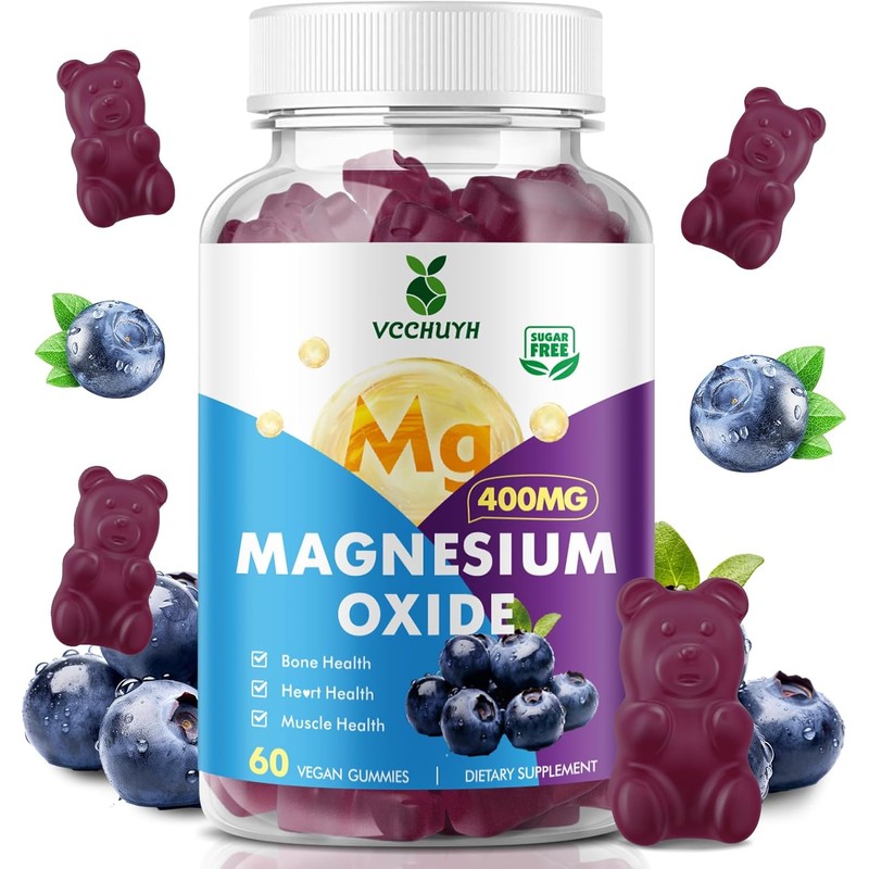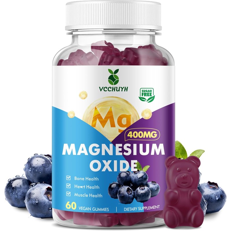 Magnesium Oxide Gummies 400mg | Sugar-Free Magnesium Supplement for Muscle Support & Energy Boost | Non-GMO, Blueberry Flavor | 60 Count for Adults & Kids