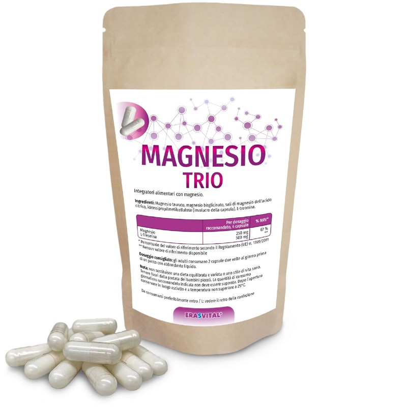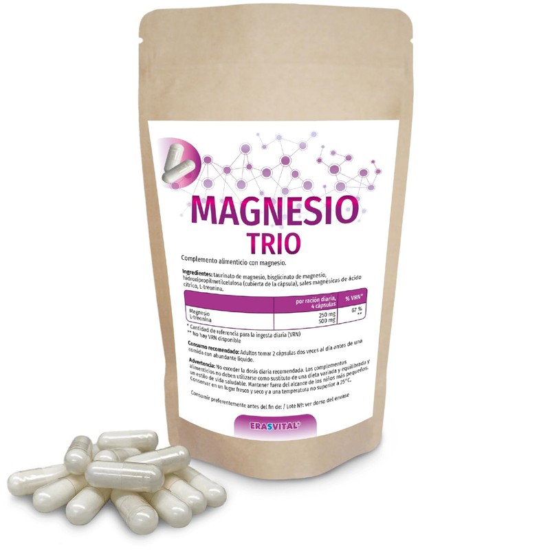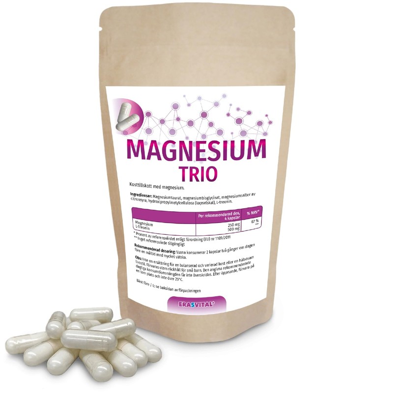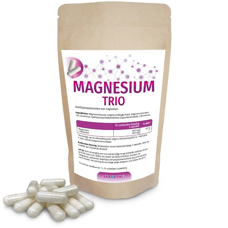 Magnesium Trio capsules with magnesium taurate, magnesium bisglycinate, magnesium citrate and L-threonine, ideal for a target group interested in mental health.