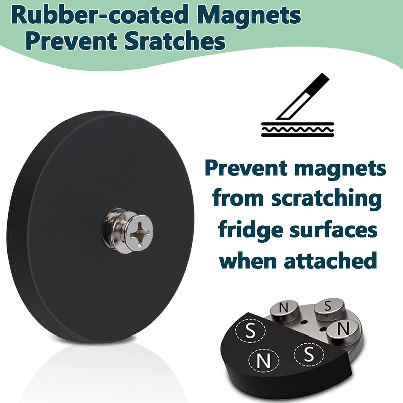- 【Scratch-resistant Rubber Coating】The rubber-coated magnets provide strong adhesion and prevent the magnets from scratching or scuffing refrigerator surfaces when attached. This makes them ideal for use on refrigerators, steel plates, and other metal surfaces