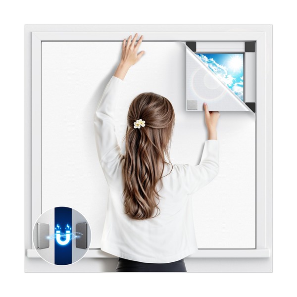 Magnetic Blackout Window Cover, 54" x 58" Portable Blackout Curtains for Bedroom, No Drill Windows Shades & Blackout Blinds, Temporary Black Out Shades for Window Film Nursery Travel RV - White