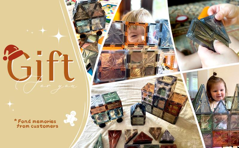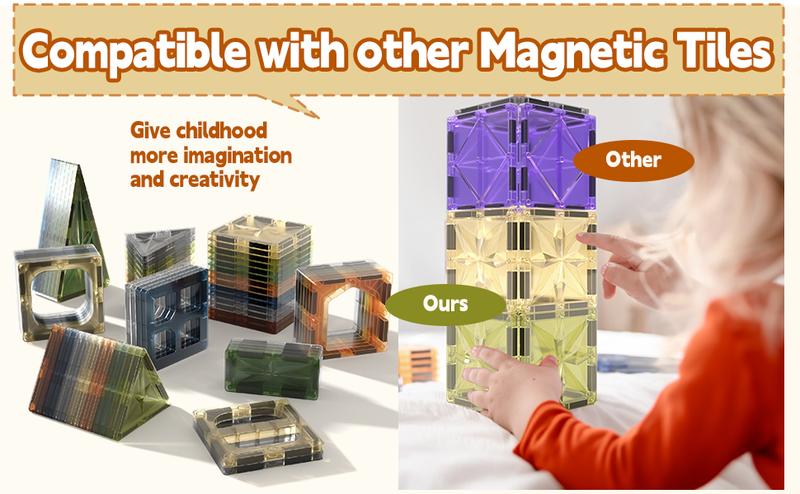 【Magnetic Building Blocks】Our magnetic block set features sealed edges and sturdy construction made from non-toxic, eco-friendly materials, ensuring safe and secure play. Perfect for kids ages 4–8 and up to play safely and creatively. 【Magnetic Track & Castle Building】These vibrant and fun-patterned magnetic tiles spark imagination. Perfect for immersive play, enhancing creativity and sensory development. Ideal for kids ages 3–8 to build magnetic structures. 【STEM Educational Toy】Enhance hand-eye coordination, logical thinking, and creativity with these educational magnetic tiles. A great choice for encouraging STEM learning through fun and engaging play. 【Interactive & Fun】The set includes an instruction sheet, 16 hexagon sticker blocks, 4 glowing balls, 4 regular balls, 1 hexagon slide, 2 UFO light pieces, 4 dinosaur magnetic pieces, 22 track parts, 33 assorted magnetic tiles, and 2 sheets of alphabet and animal stickers. Children can build structures and scenes with easy-to-connect, endlessly stackable magnetic pieces. 【Perfect Learning Gift】An ideal magnetic building toy for kids of all ages—especially great for exploring and building in virtual or physical settings. Perfect for group activities or classroom use. Great gift for birthdays, Christmas, Children’s Day, STEM events, school activities, or as a surprise present.
