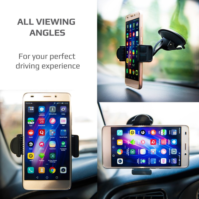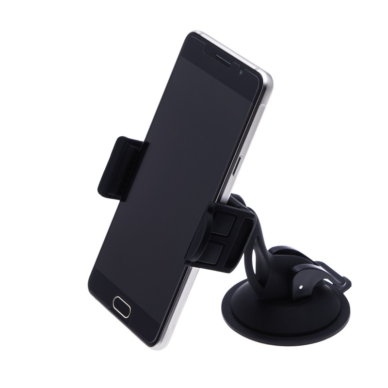 - Universal black and 360 degree adjustable car holder for mobile phone with sticky suction cup made of high quality PC + ABS material.