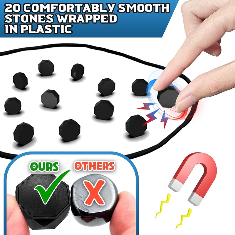 - 【Interactive Magnetic Chess】: Portable travel set with 20 black stones. Each piece has a magnet wrapped around the outer layer of comfortable, smooth plastic material to ensure that the pieces stay put and provide a soothing and interactive play experience.
