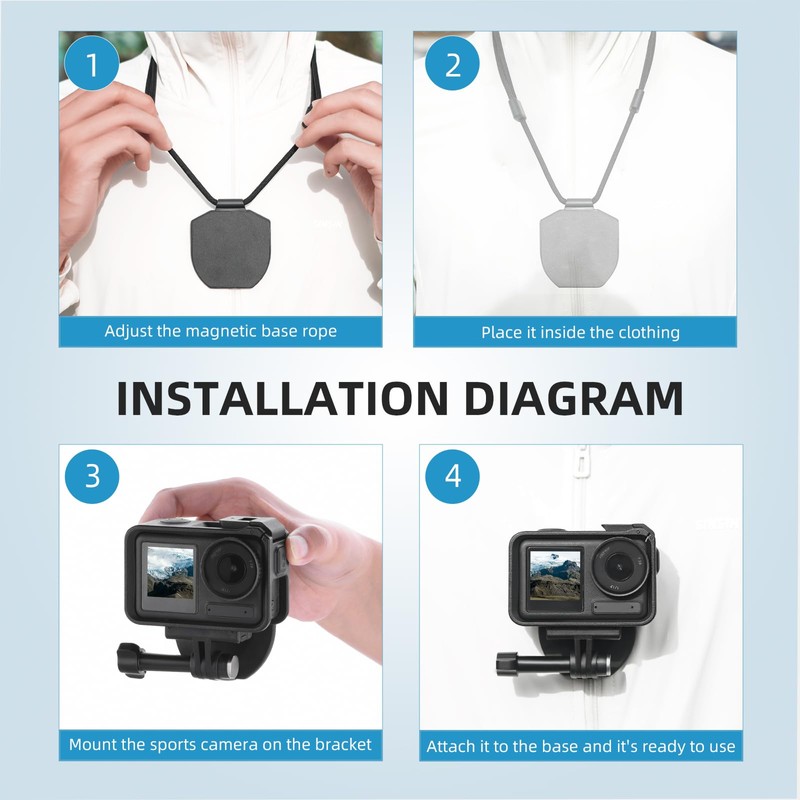 - Stealthy & Comfortable: The agantic chest mount for gopro is designed to be virtually invisible and ultra-lightweight, our magnetic neck mount discreetly integrates into your outfit. Perfect for T-shirts and light clothing, it features an adjustable, soft strap to fit all neck sizes without irritation. Weighs only 80g — carry it effortlessly in your pocket or backpack!