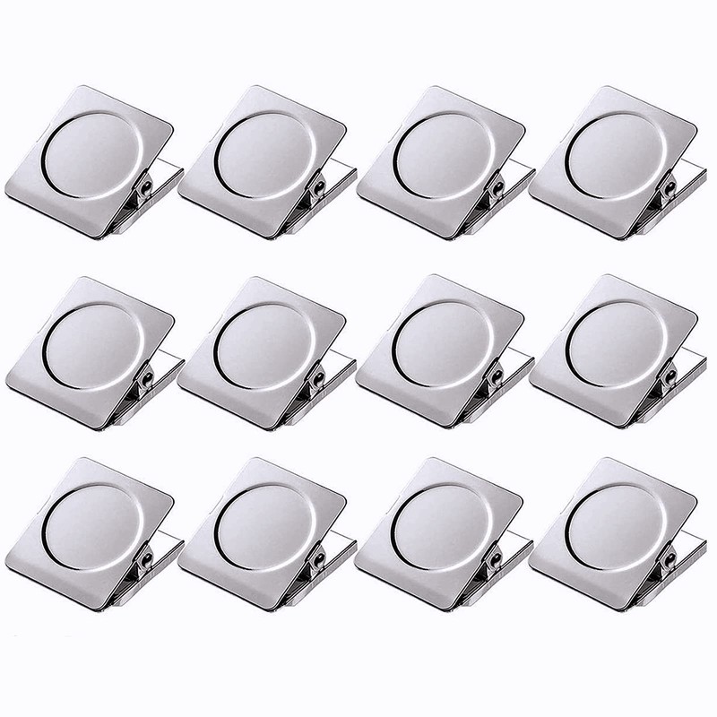 Magnetic Clips, Magnetic Clips, Refrigerator Magnets for Whiteboards, Set of 12, Office Supplies, Document File Fixing, Silver