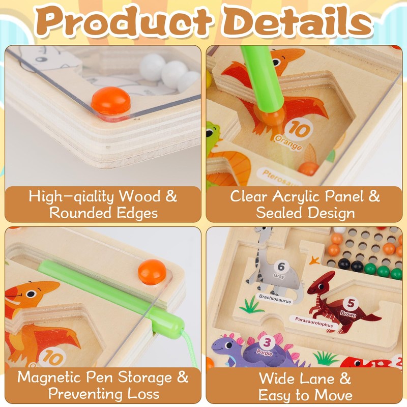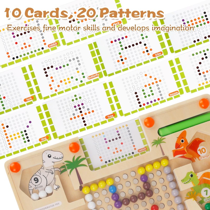 - Funny Magnetic Maze Puzzle Toy: Magnetic maze board has 10 built-in dinosaurs representing numbers 1-10, as well as 55 magnetic beads in 10 bright colors and a magnetic pen. The beads are color-matched to their numbers, perfect for training children's counting, color recognition, and matching skills and learning more about dinosaurs in a fun way.