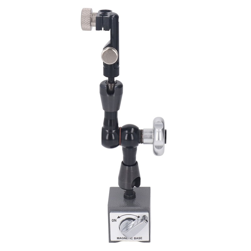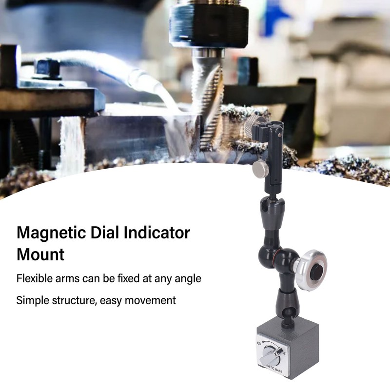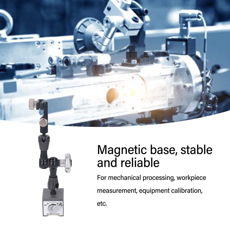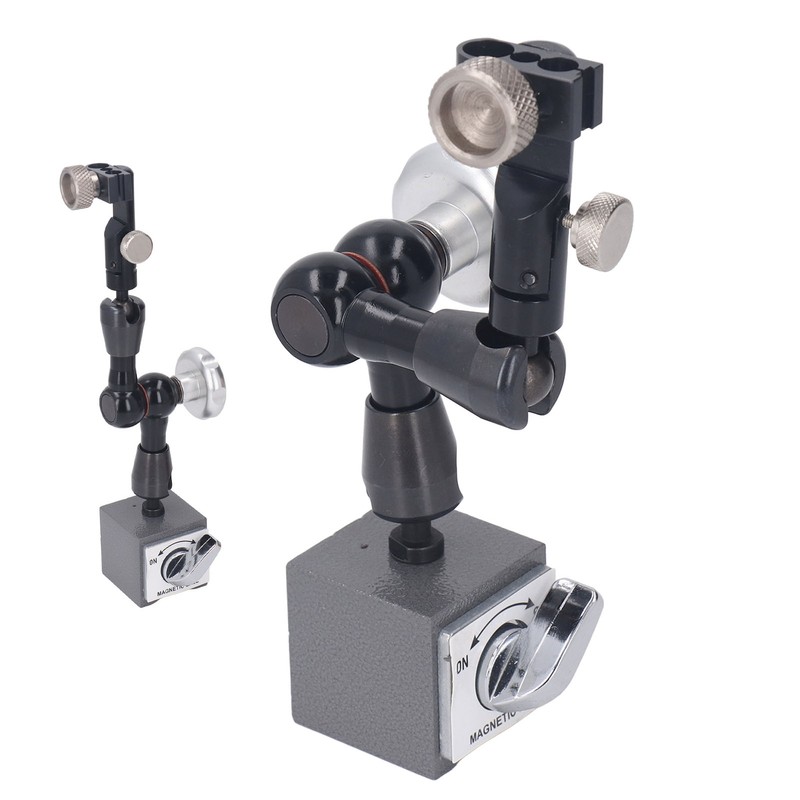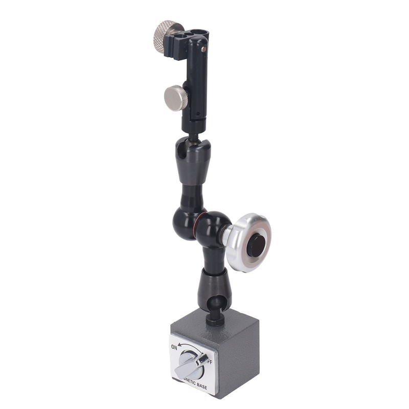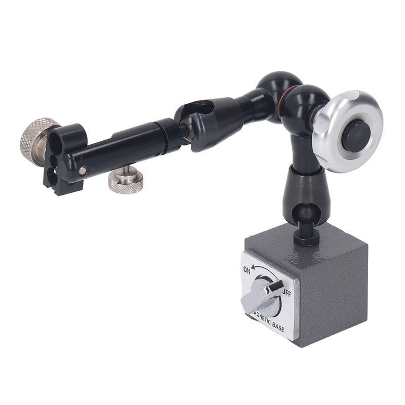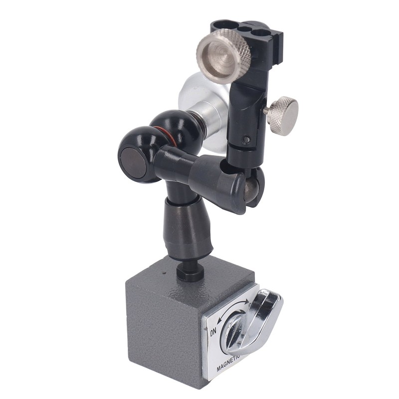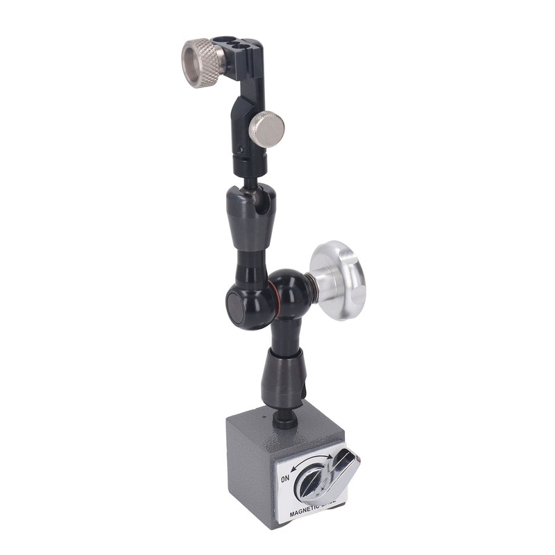 1、Flexible Operation: The magnetic dial indicator mount has flexible arm that can be fixed at any angle, making it convenient and flexible to operation. 2、Easy Movement: The magnetic base can be conveniently moved without any reactive force to avoid damage to the instrument and workbench. 3、Permanent Magnet: The dial indicator mount base has permanent magnet, which is easy to fix the dial gauge on the machine tool, stable and reliable. 4、Simple Structure: The universal dial indicator mount has a simple structure, which is convenient for the use and maintenance of metal workpieces. 5、Wide Application: The magnetic base has a suction of 50kg, widely used in mechanical processing, workpiece measurement, equipment calibration, etc.
