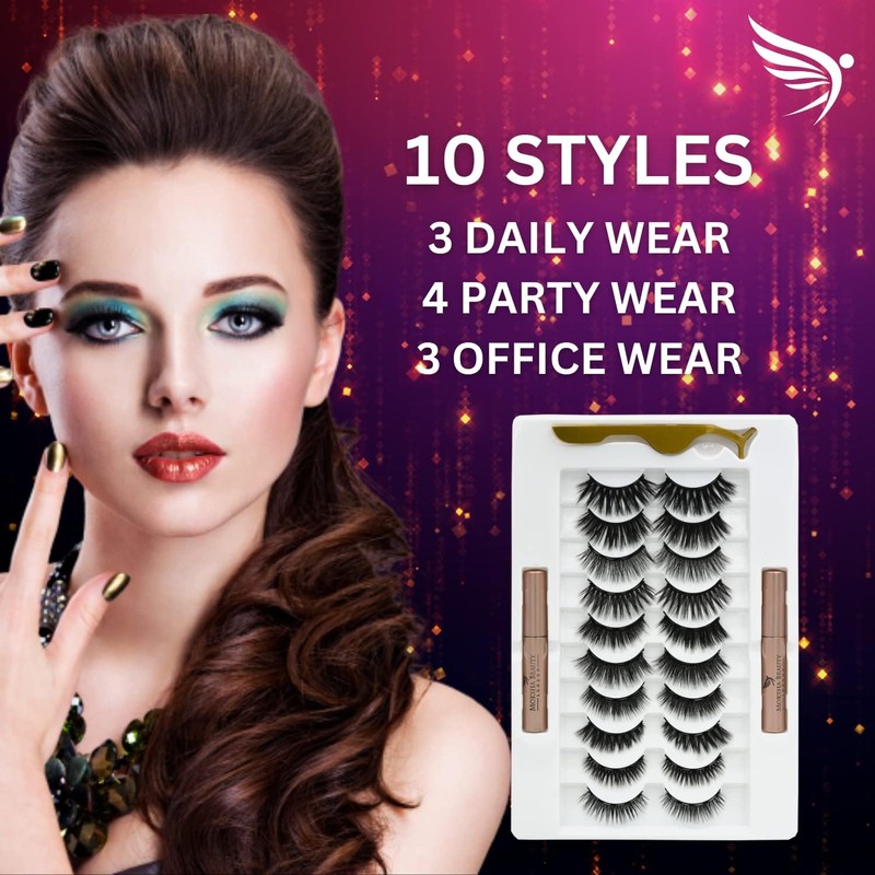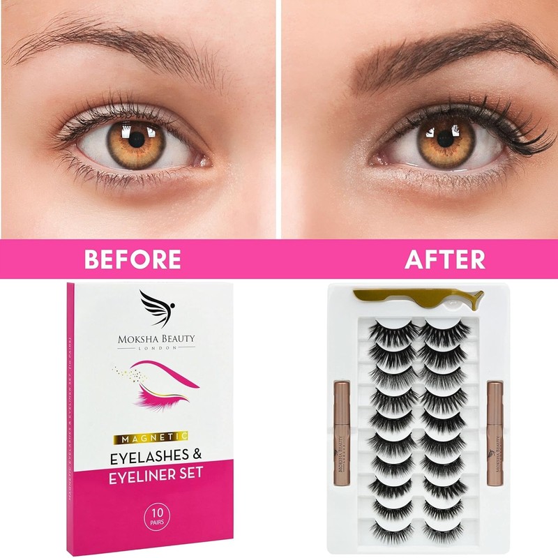 - 10 Pairs False Eyelashes - The Moksha magnetic lashes set contains waterproof magnetic eyeliners , tweezers and 10 pairs magnetic eyelashes which are easy to use. The long lasting magnetic eyeliner is smudge-proof and waterproof as well.