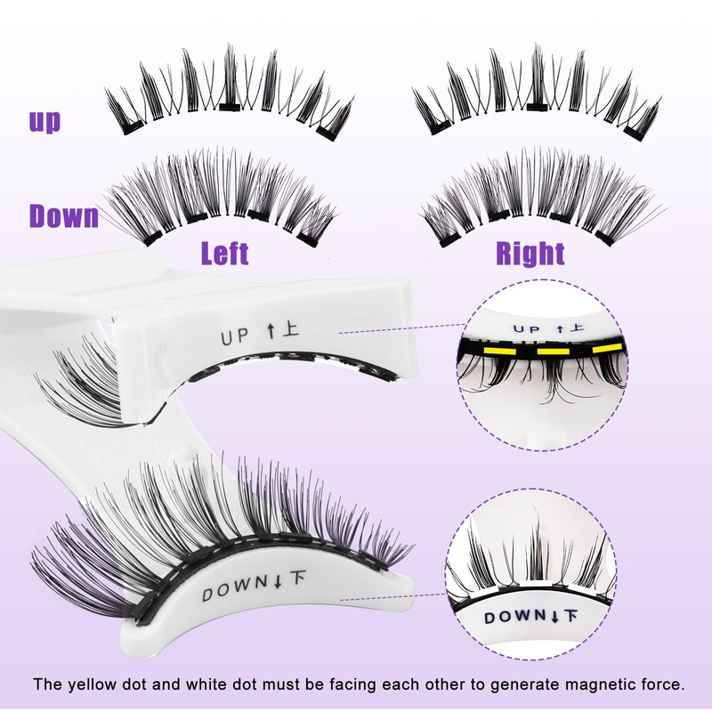 - Firm Fit: The magnetic lash extensions are equipped with six tiny magnets at the root of the lashes, just take the magnetic applicator and gently clip it on your lashes using the correct wearing method and it will be tightly attached to the root of your lashes without worrying about the lashes falling off when you wear it