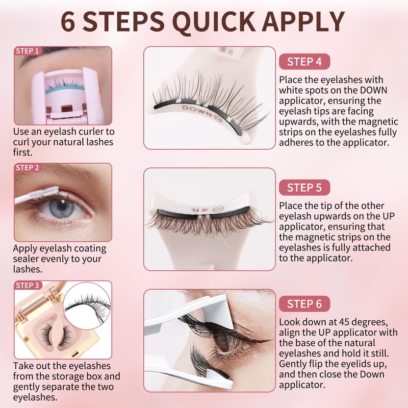 • 【New Experience - No glue, No eyeliner, No Makeup Removal】Refuse cumbersome traditional eyelashes, no longer need glue and magnetic eyeliner. Quickly apply eyelashes in just three steps for a new makeup experience. Save a lot of time to create the perfect eye makeup, and there is no need to worry about eye irritation and allergies caused by adhesives.