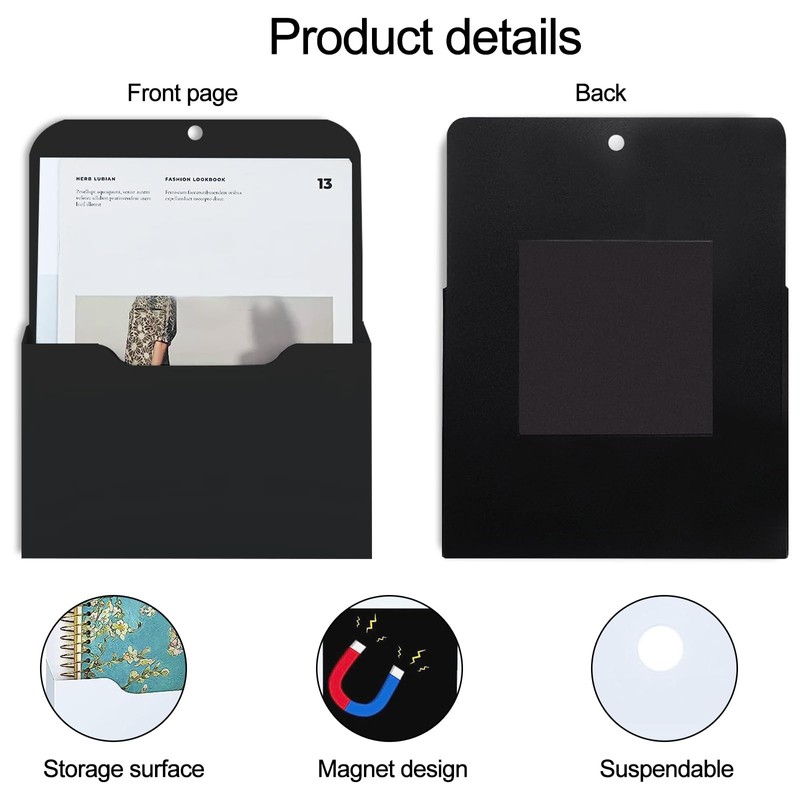 - MAGNETIC: The magnetic file holder is equipped with a magnet on the back, which can attach the product to lockers, whiteboards or other metals.