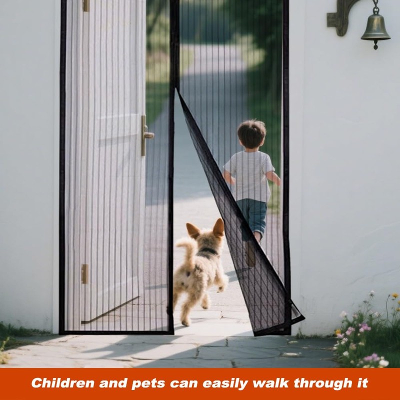 Magnetic Fly Screen Door, 80*210cm Magic Paste Curtains, Anti Mosquito Mesh Fly Curtain Heavy Duty Bug Mesh Curtain Super Quiet Stripes Encryption Black Polyester Magnetic Door Fly Screen CurtainFeatures1. The magnetic screen door provides a convenient hands-free entry and exit, as it automatically closes behind a person, making it particularly useful for carrying items or for individuals with mobility issues.2. Our heavy duty bug mesh curtain use high-density and antioxidant material, strong and durable. Even the smallest bugs and mosquitoes have no chance to get in, while let fresh air in, let you no longer be irritable in the hot summer.3. The magnetic screen door is designed with a series of magnetized strips along the center line of the opening. When the door is not in use, these strips automatically close the door behind a person, effectively sealing the entrance and keeping insects out.The magnetic closure allows for quick and easy access for pets to move freely in and out without assistance from humans.SpecificationsMaterial: NylonColor: BlackSize: 80*210cmPackage includes:1 x Magnetic fly screen door set