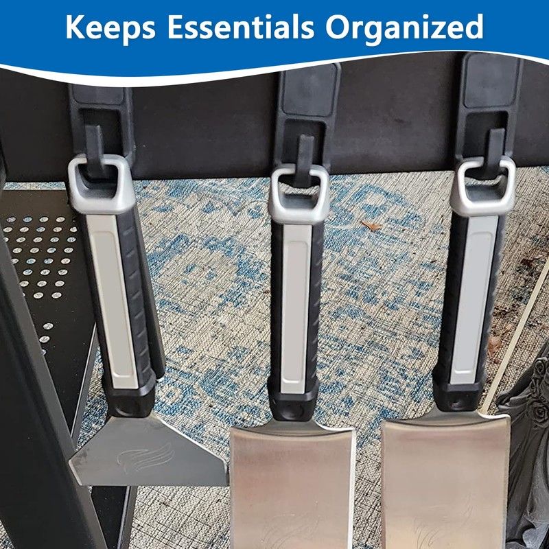 3 Pack Strong Magnetic Hooks: The magnetic hooks have a built-in strong magnet that attaches securely to the grill, allowing you to hang light or heavy grilling tools as you wish, without worrying about the effects of the heat from the grill