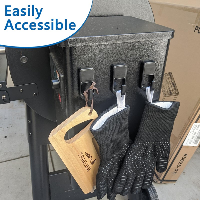 • 3 Pack Strong Magnetic Hooks: The magnetic hooks have a built-in strong magnet that attaches securely to the grill, allowing you to hang light or heavy grilling tools as you wish, without worrying about the effects of the heat from the grill