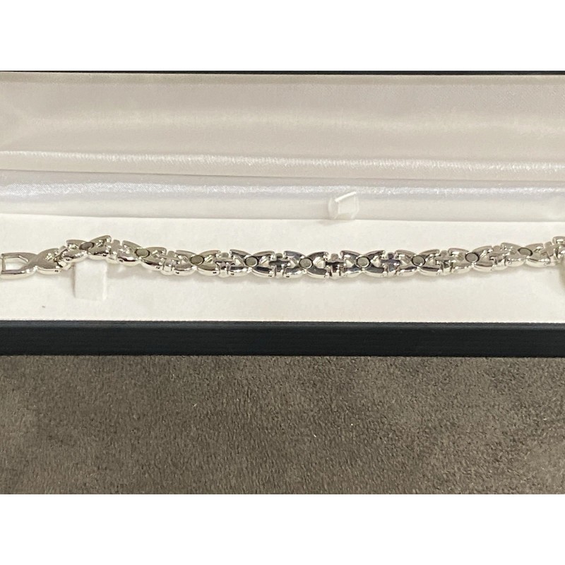 MAGNETIC HEALING BRACELET SILVER / CHROME FAUX DIAMOND / CRYSTAL W/ 10 MAGNETS