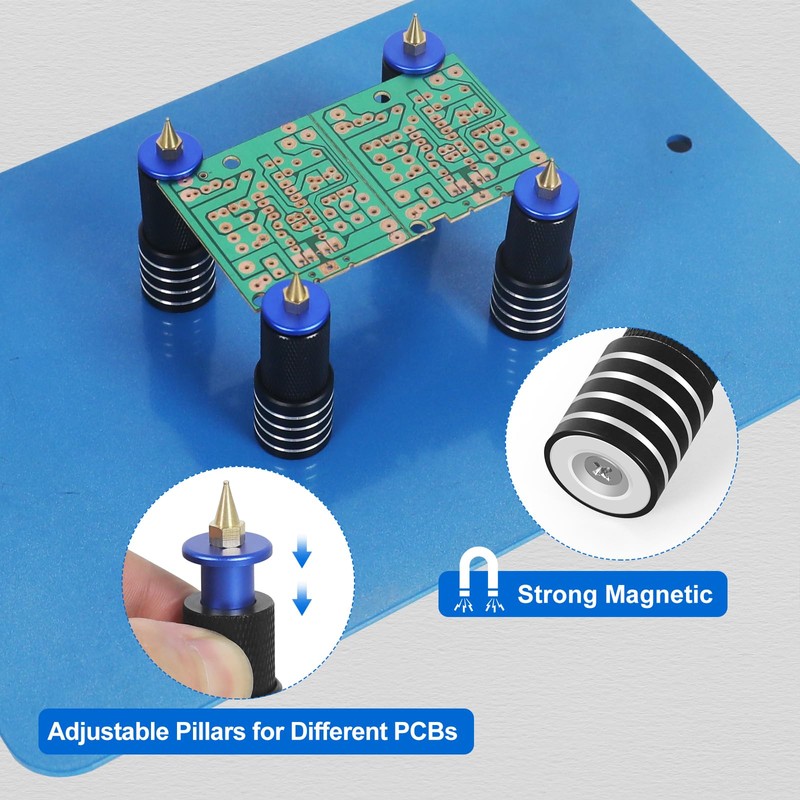 The magnetic PCB holders added an adjustable spring-loaded opening for holding multiple types of circuit boards makes soldering operations more stable and easier.