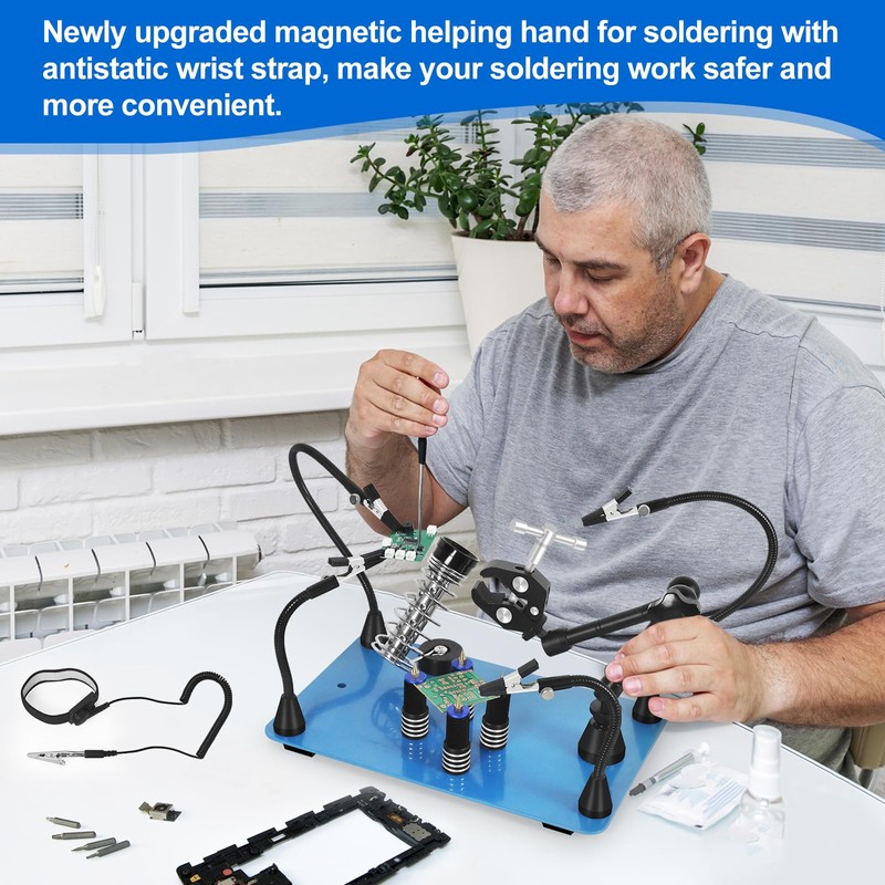 Magnetic Helping Hands Soldering Third Hand Tool with Soldering Gun Holder Adjustable PCB Holders Soldering Arms Clamp Anti-static Wrist Strap Extra Large Base for Electronic Soldering Welding