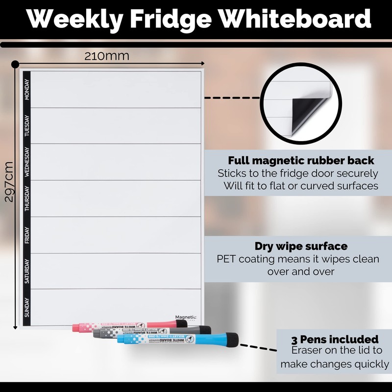 - A4 SIZED FRIDGE WHITEBOARD - Smaller than our traditional A3 board it's great for leaving notes, memos or reminders. Helps you stay organised for the whole week