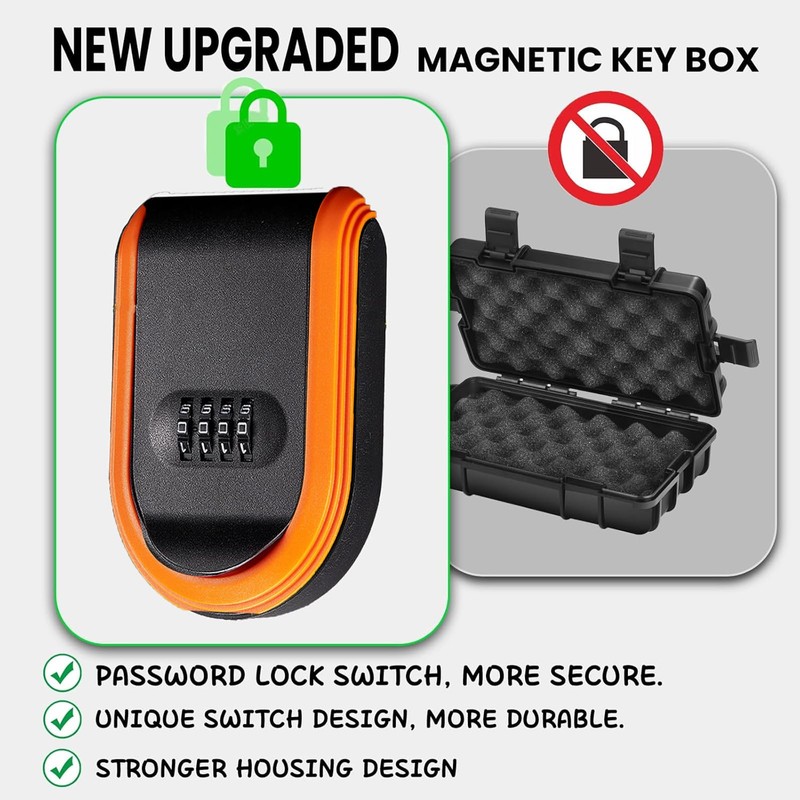 Magnetic Key Holder Under Car,Magnetic Key Box with Combination Lock, Hide Spare Key Outside,Waterproof Magnetic Key hider Outdoor for Hiding for Vehicles Outdoor
