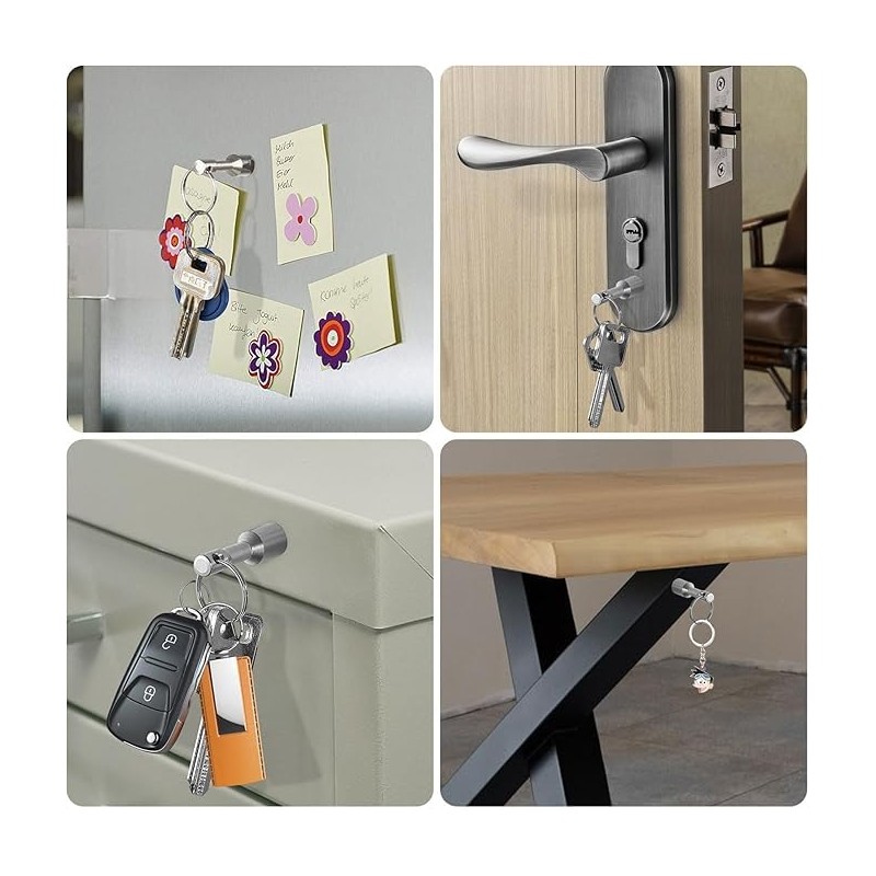 Magnetic Key Ring - Neodymium Magnet - Steel Casing, Silver, Diameter 12 x 40 mm