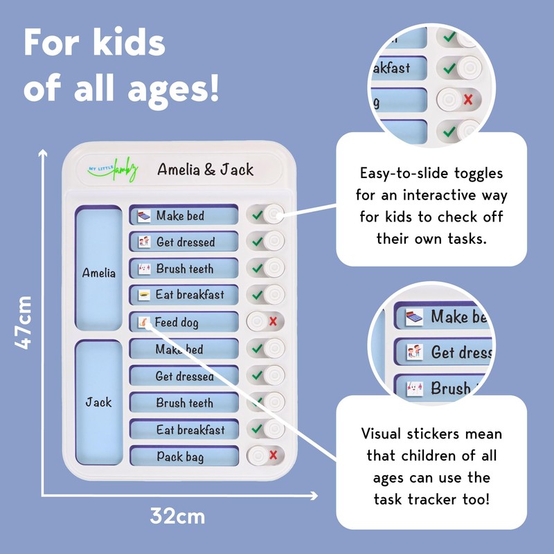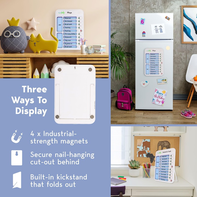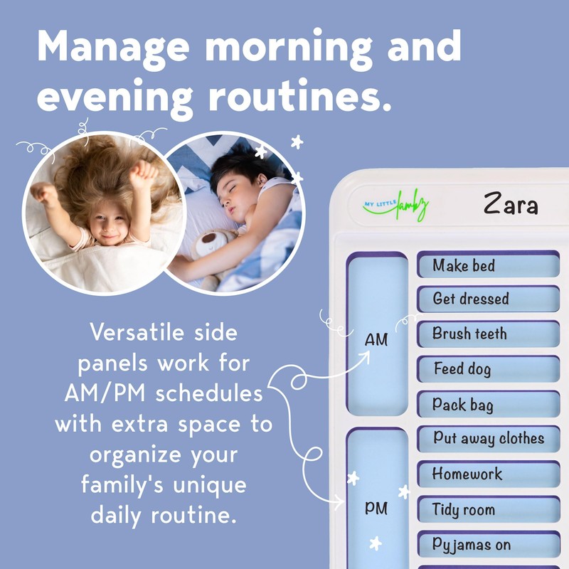 - Multi-child Friendly: Versatile side panels work for AM/PM schedules or multiple kids' chores - includes personalization stickers for names and extra space to organize your family's unique daily routine.