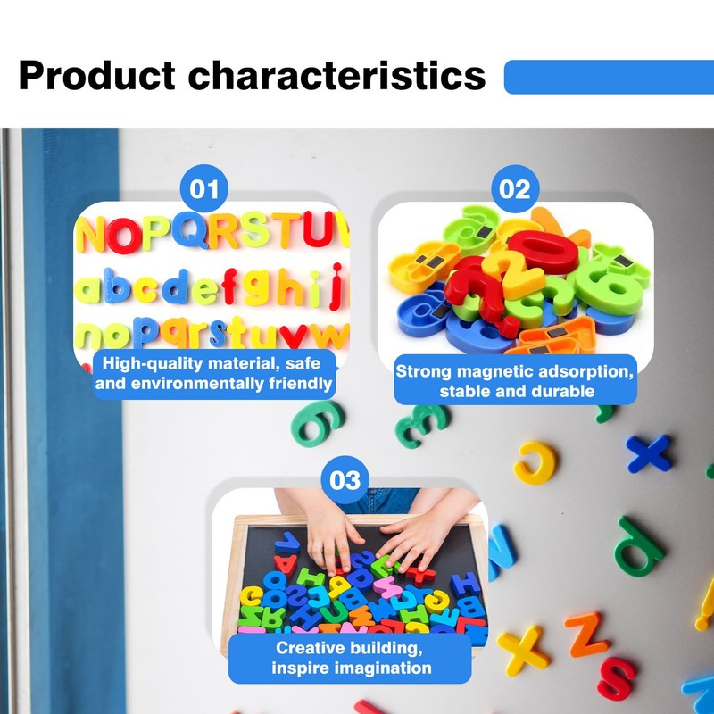 - Product content: includes 26 English capital letters, 26 English lowercase letters and 28 0-9 numeric symbols, total 80, bright colors, which help children learn letters and spelling words easily