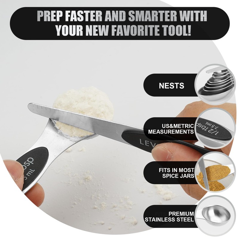 - 【STAINLESS STEEL MEASURING SPOONS】-With single metal construction and heavy duty premium Stainless Steel, these measuring spoons were built with endurance in mind. No more worrying about rusting or bending
