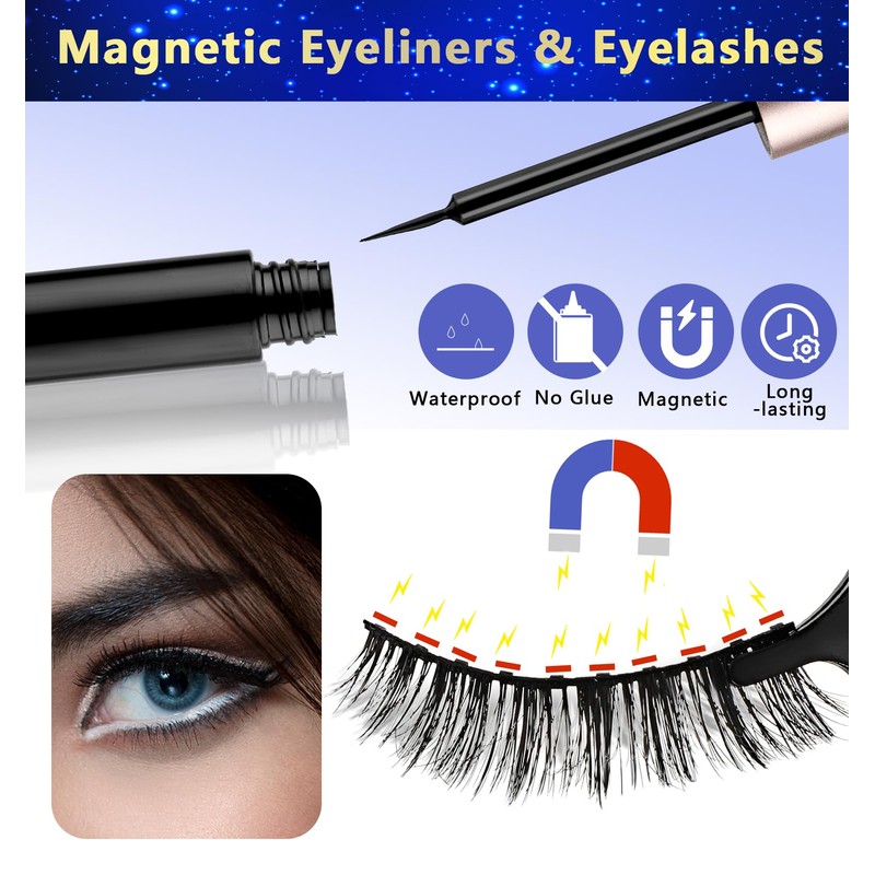 - Magnetic Eyelashes with Eyeliner: The 2 tubes of magnetic eyeliners that ultra-fine magnetic particles inside allow the magnetic eyelash to easily attach, and you no longer need messy glue or adhesives;