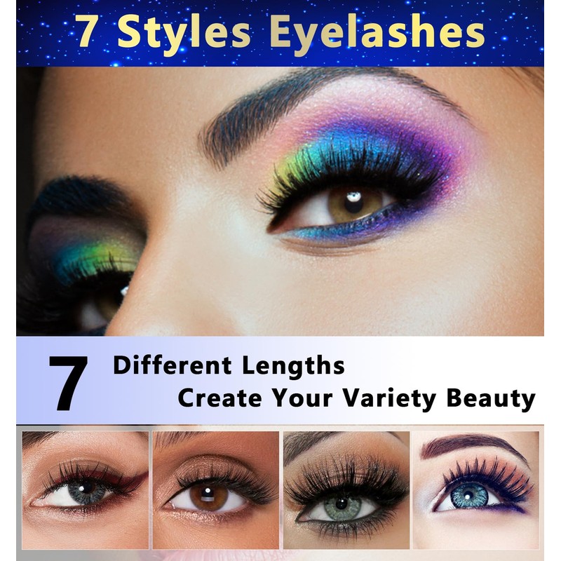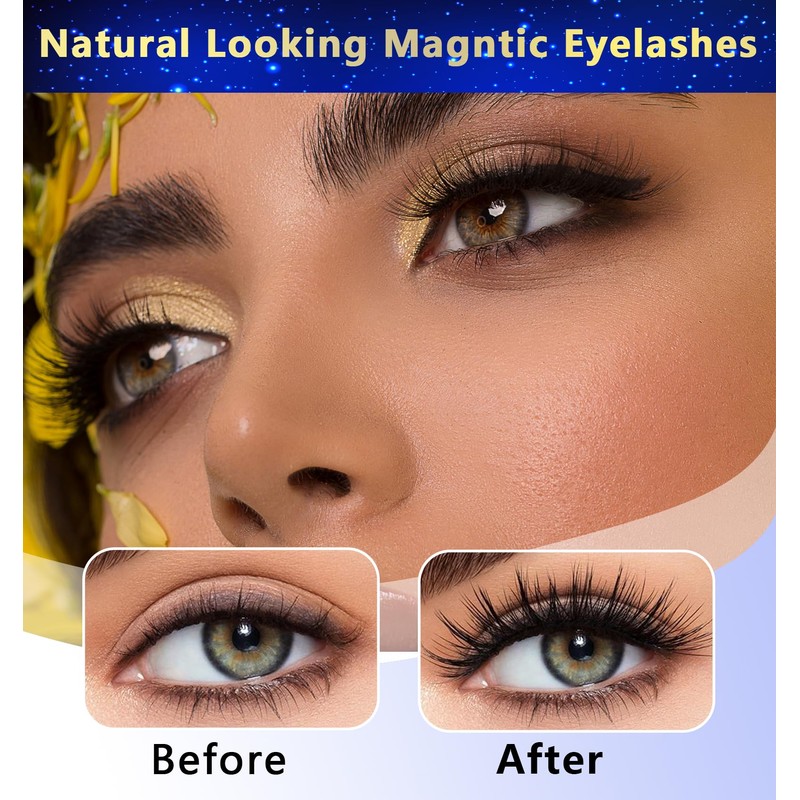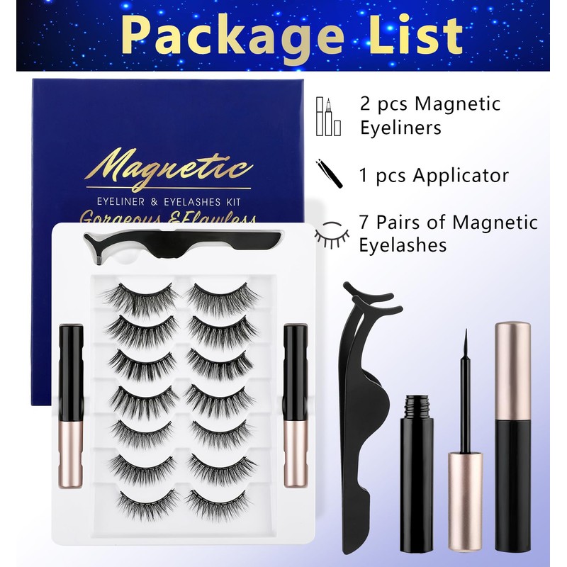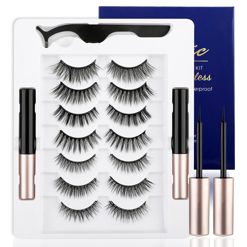 - Magnetic Eyelashes Kit: The magnetic eyelashes kit includes 7 pairs of magnetic eyelashes natural look, 2 tubes of magnetic eyeliners, and 1 tweezer;
