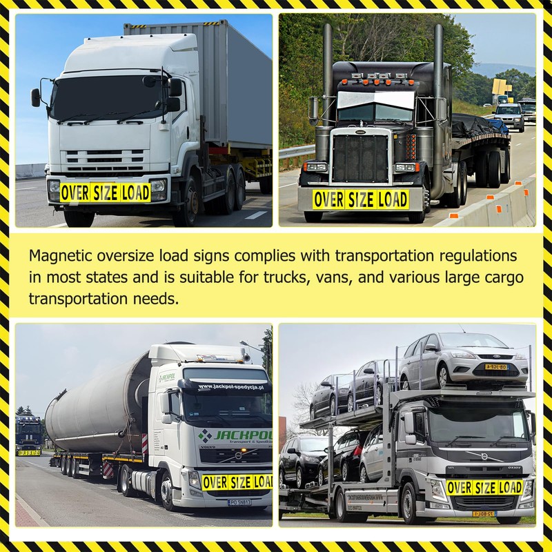 • ✔🚚【High Contrast Matching】 The oversize load signs for trucks features a prominent yellow background with black text, Enough to remind passing drivers and pedestrians. Oversized cargo sign magnet is suitable for sticking to the rear of trucks, cars, and trailers, ensuring good safety.