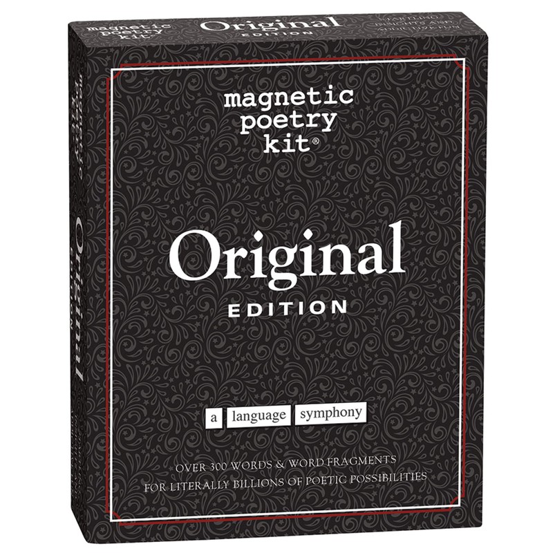 - The first and original! This is the kit that, since it came out in 1993, has launched a gajillion fridge door poems! Includes a gorgeous symphony of words including (of course) gorgeous, symphony, elaborate, time, soar, dream and many, many more! Magnetic Poetry is a pop culture phenomenon, and it keeps growing! PLEASE NOTE: Packaging may vary.