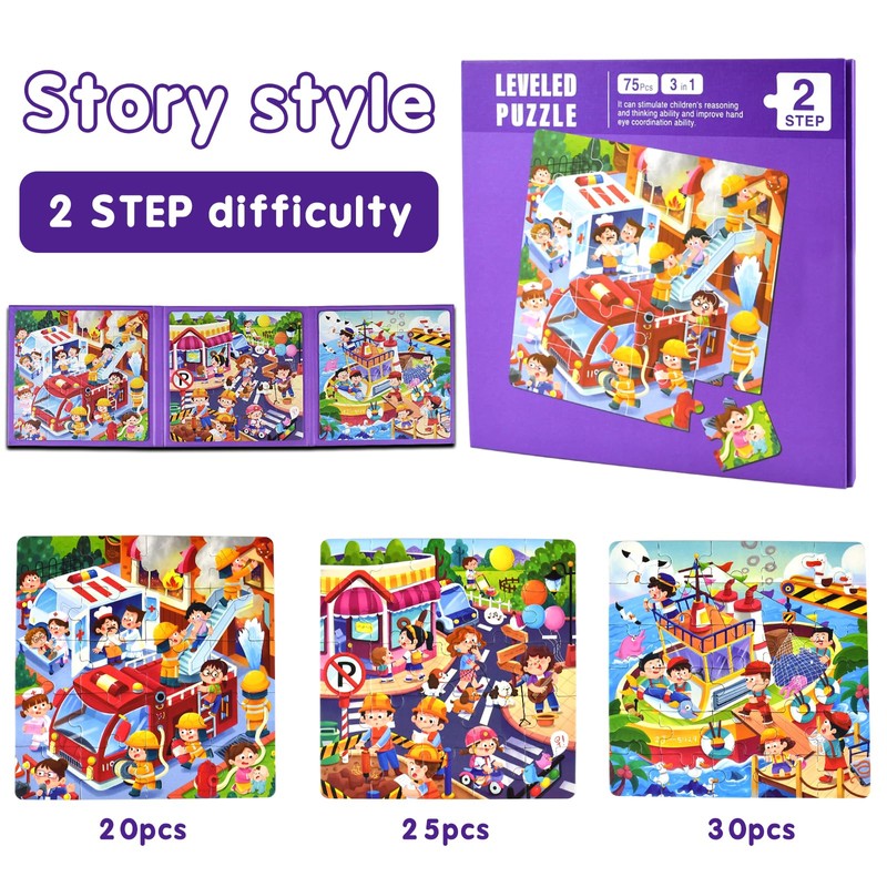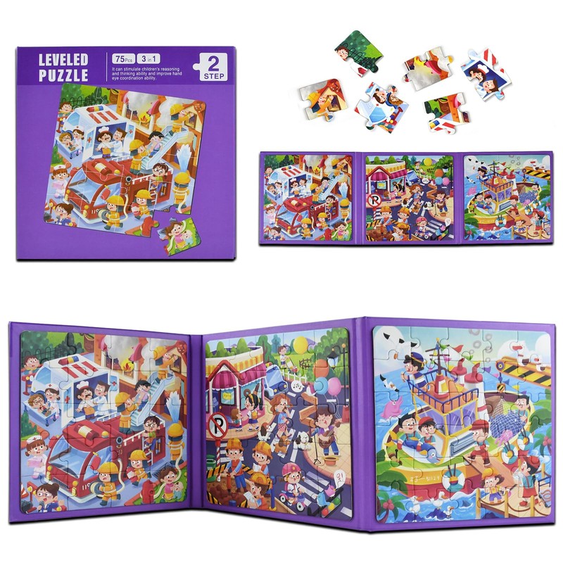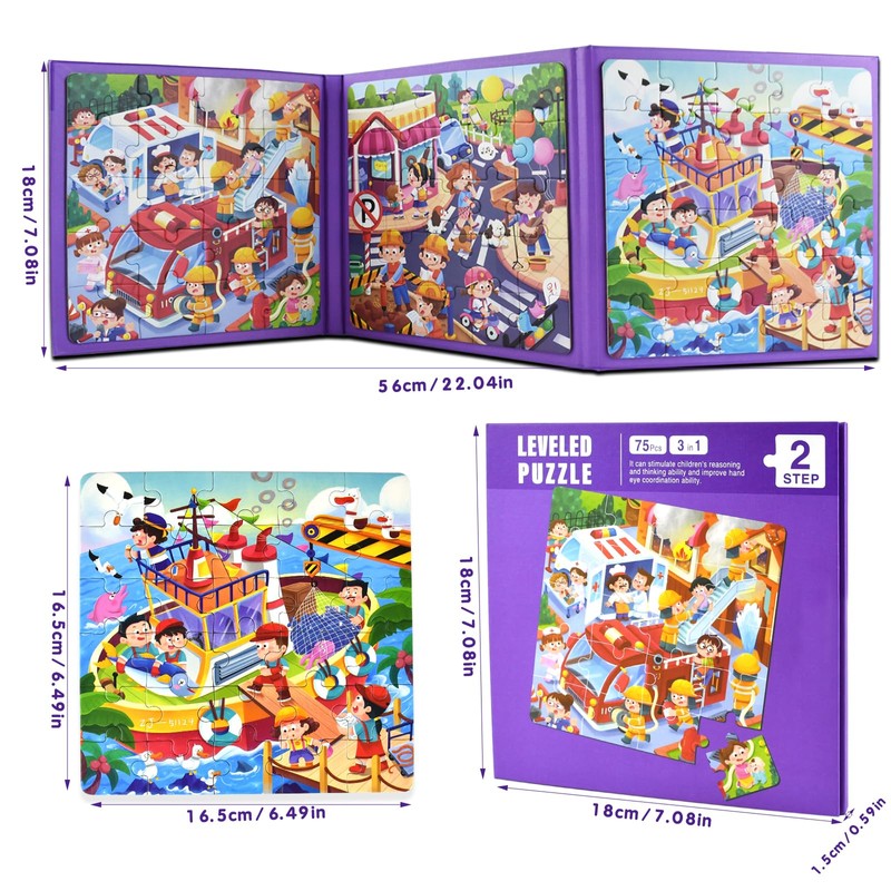 - 3-in-1 magnetic puzzle: you will receive a magnetic folding puzzle book that can be folded into a book for portable storage. This rescue squad puzzle book consists of three different themes with 20/25/30 piece puzzles with different levels of difficulty, so children have fun solving puzzles from easy to difficult.